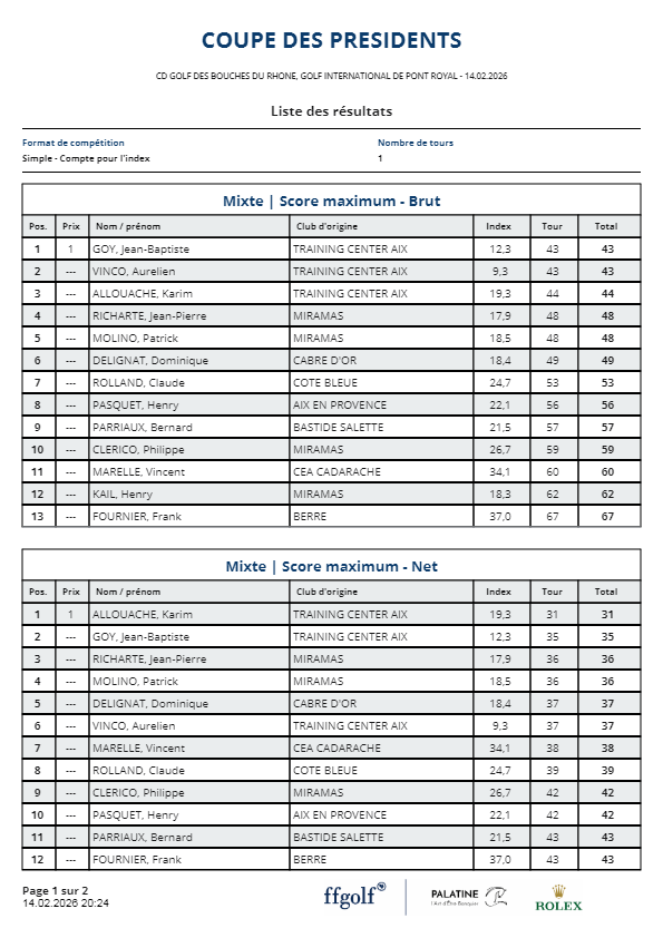 COUPE DES PRESIDENTS et du COMITE 2026
